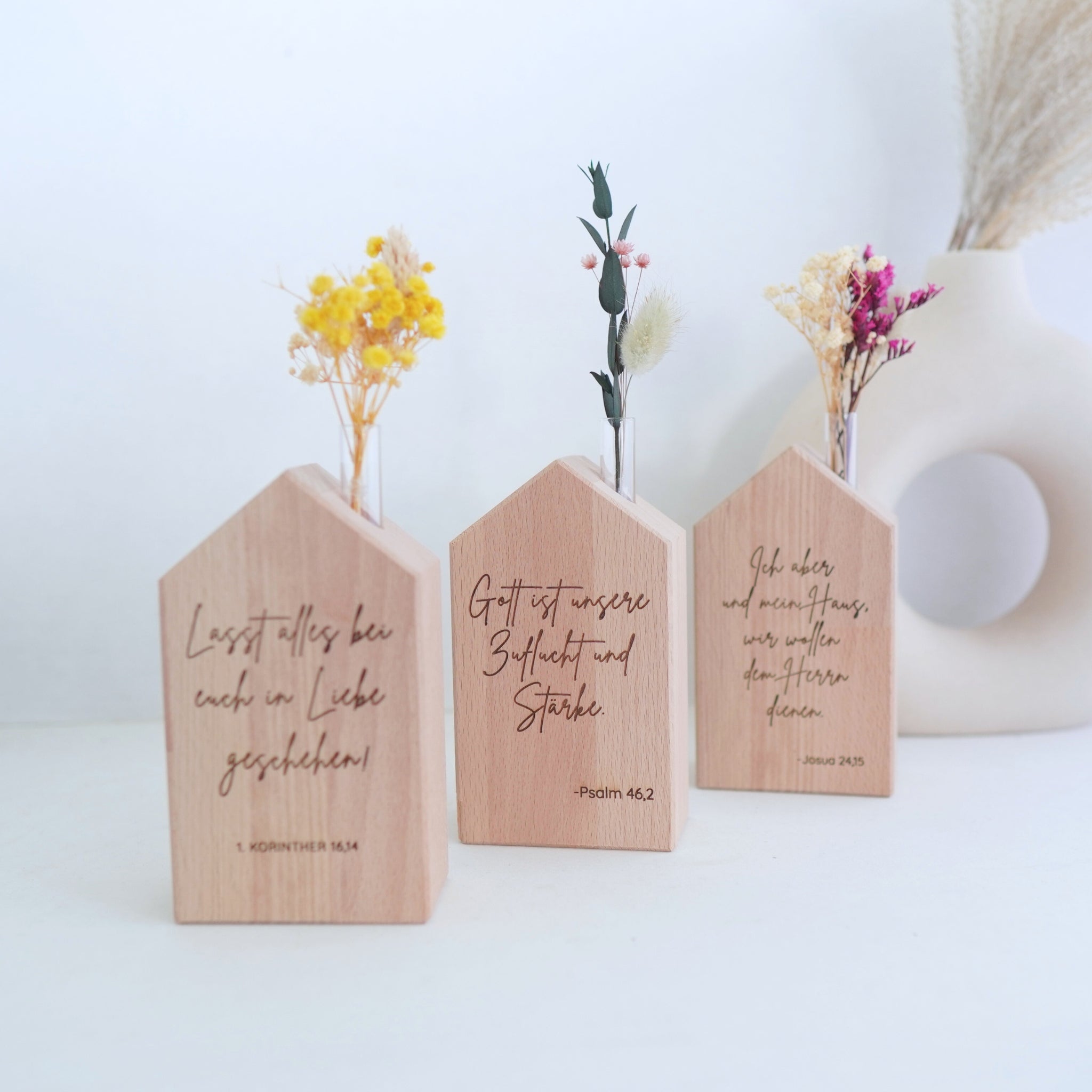 Buchstütze aus Bambusholz "Prüft alles" · Gravur