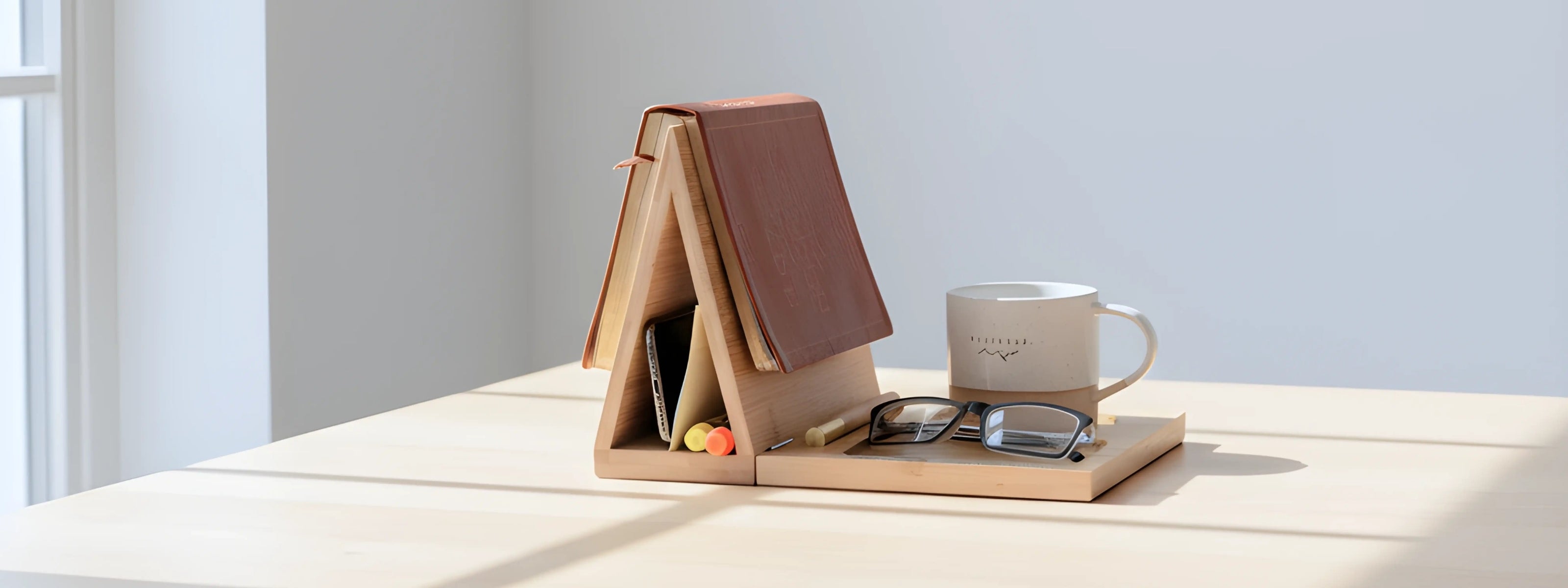 Buchstütze aus Bambusholz "Prüft alles" · Gravur