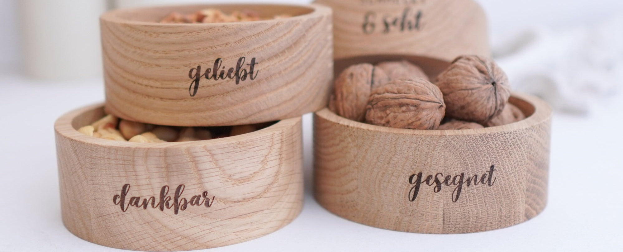 Kleine Holzschale · "schmeckt & seht" · Eiche