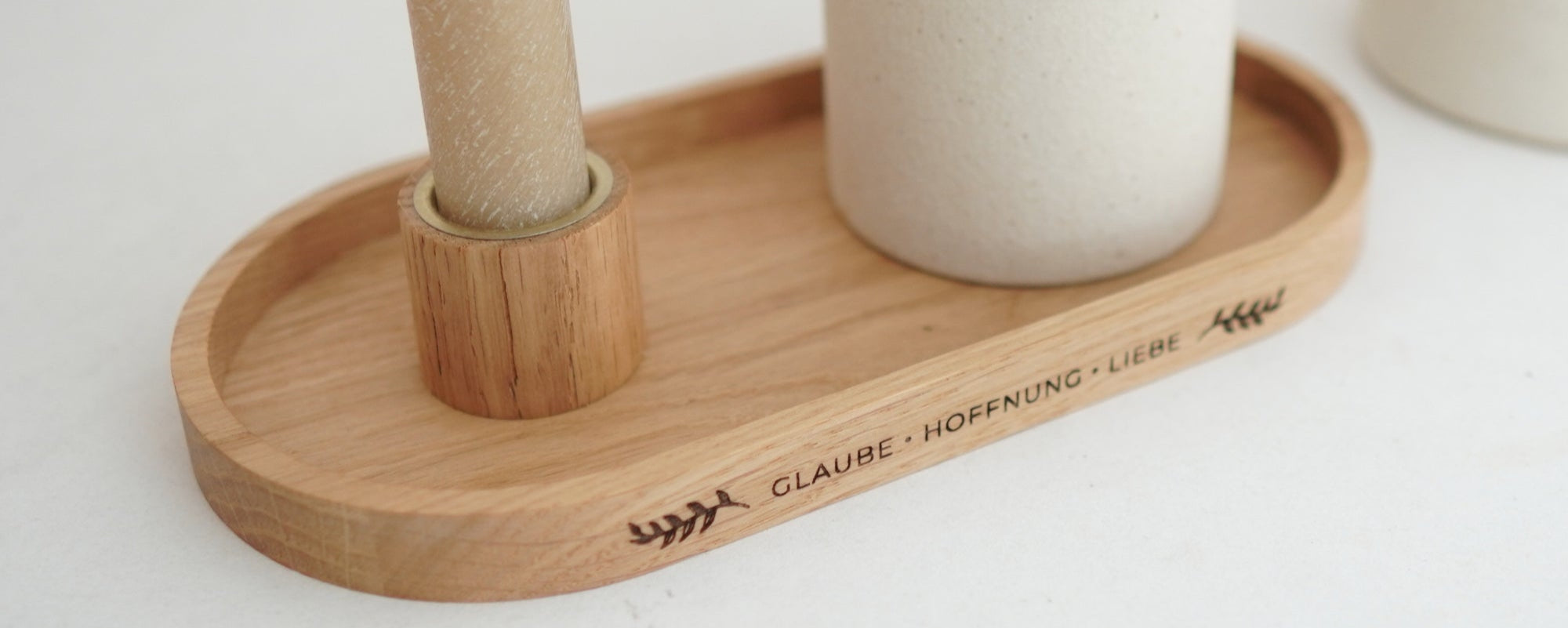 Kerzenhalter "Gnade Hoffnung Liebe" Eiche