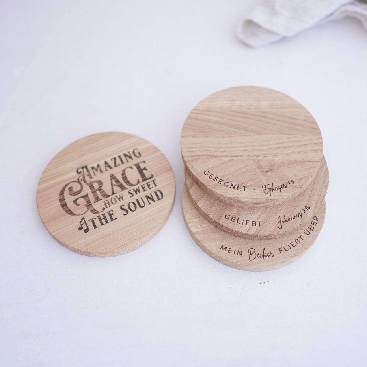 Entdecke unseren stilvollen Untersetzer aus massivem Eichenholz, der nicht nur deine Tische schützt, sondern auch eine tiefe geistliche Bedeutung trägt. Der Untersetzer ist mit der liebevollen Botschaft „Geliebt – Johannes 3,16“ graviert – ein Hinweis auf Gottes unendliche Liebe, die er der Welt durch die Hingabe seines Sohnes Jesus Christus schenkt.